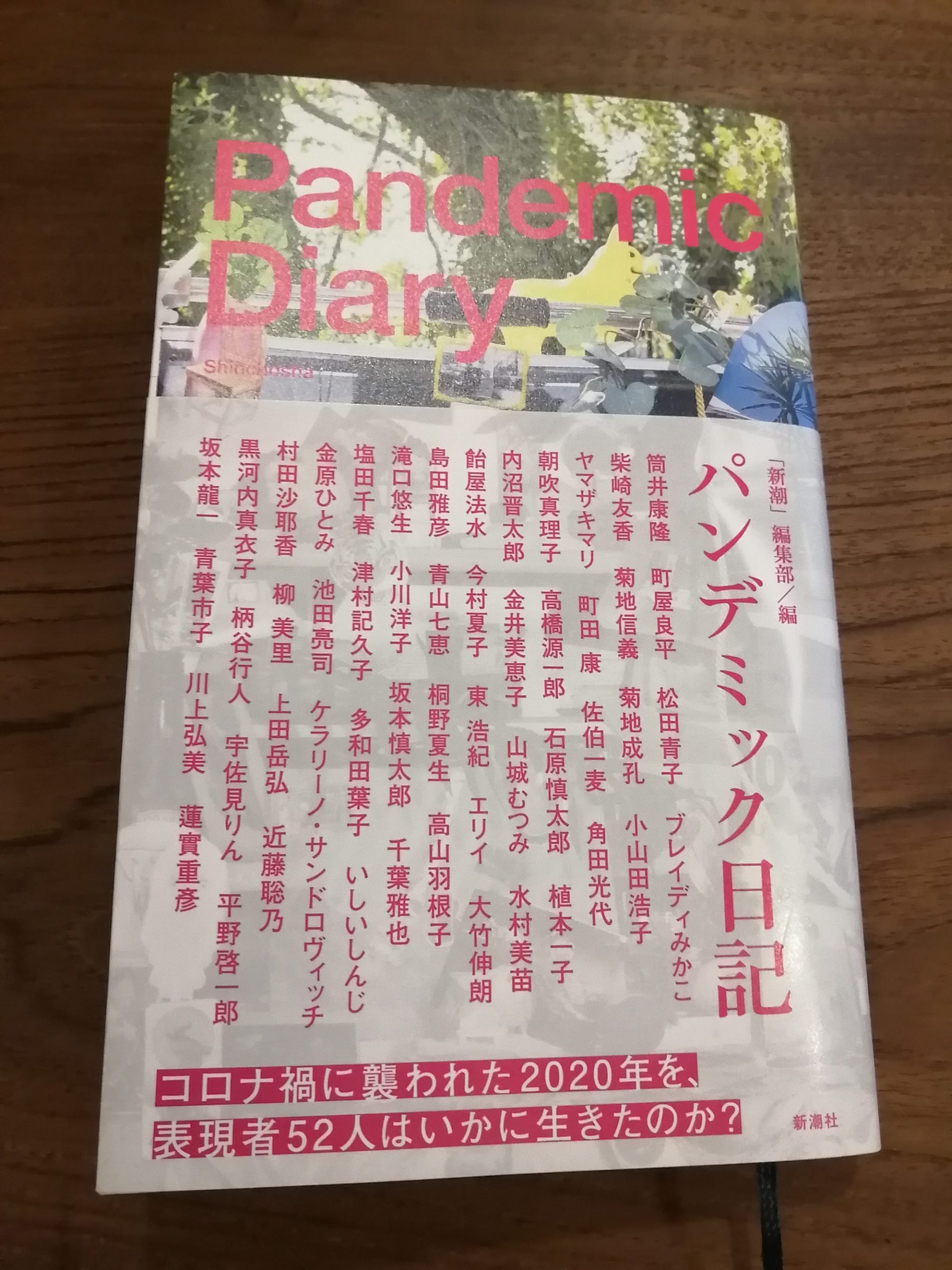 「新潮」編集部/編の『パンデミック日記』を読みました。2020年1月1日から2020年12月31日までの1年間を小説家など52人のクリエイターがリレー方式に日記を1週間ずつ繋いでいくというもの。1月1日の筒井康隆から始まり、蓮實重彥で1年が終わるという豪華な内容です。義理の弟がやっているアート・ユニット(THE COPY TRAVELERS)がカバーと本文カットを担当しているので誇らしげな気持ちで読みました。『パンデミック日記』とはいうものの、執筆者はほとんどが”物書き”に類する人たちなので元々がステイホームな仕事柄、特にコロナ禍だからといってひどい影響を受けているという感じはありません。ただただ締め切りのある日常が描かれていて、この中では劇作家などの演劇畑の人が公演キャンセル続きで大変そうだなという印象でした。本当の『パンデミック日記』はコロナに感染した人、職を失った人、医療従事者などの、“日記など書いている場合じゃない人”によるものなのかな、とも思いました。とはいえ、影響されやすいたちなので、真似して私の『パンデミック日記』としてここ1週間の日記を書いてみることにします。