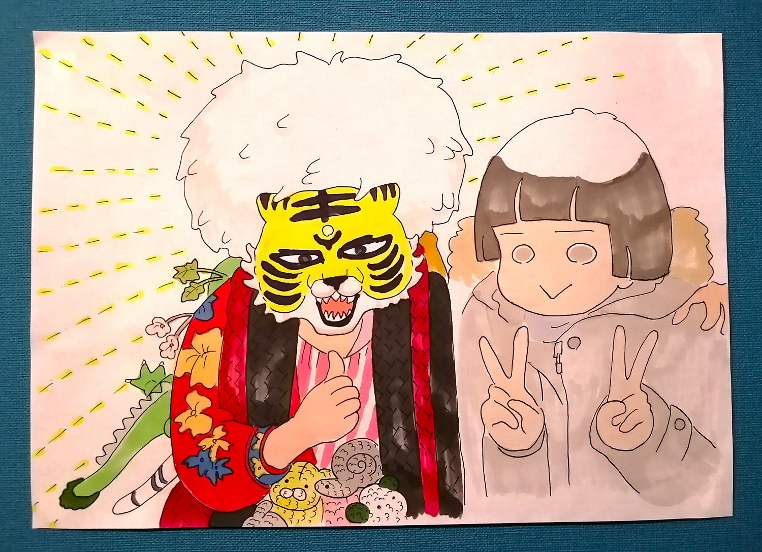 本当はタイガーと一緒に撮った写真をそのままブログに上げたかったのですが、本人の許可を得ていないので何かと思い、イラストで描いてみました(タイガーなら全然OKと言ってくれそうな気もしますが…)。実際の写真は現在の私のスマホのロック画面になっています。会社で何人かの人にタイガーのことを聞いてみましたが、50代の男性がその存在を知っていました。その男性曰く「少なくとも1980年代からあの格好で活動している。当時のアニメにも新宿の街並みとともにタイガーが描かれていた」とのこと。その頃から現在に至るまであの格好で新宿を駆け巡っている。意味はわからないが、とにかくすごい!と改めてリスペクトの念が湧きました。